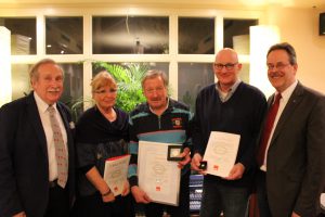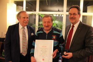 - Gottfried Optenplatz (Mitte) mit der silbernen Willy-Brandt-Medaille