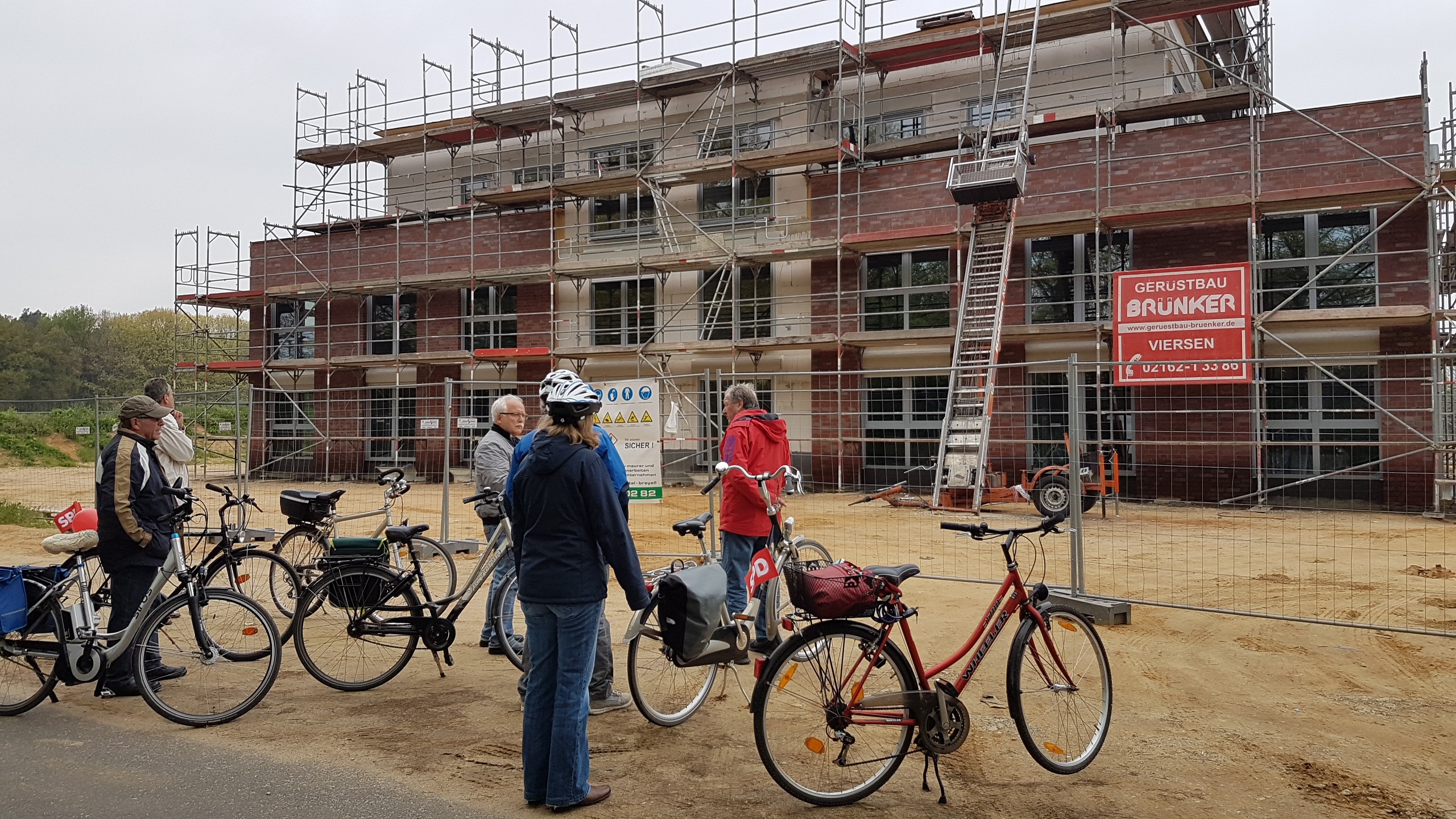 Im Anschluss ging es per Rad quer durch den Ortsteil Brüggen zu einigen Plätzen von besonderem Interesse in der Kommunalpolitik. So machten sich die interessierten Mitfahrer ein Bild vom Baufortschritt im Baugebiet „südlich des Erlenweg“, der GWG- Baustelle am Eichenweg, der Verkehrssituation im Bereich des Hagenkreuzweges, dem Bauvorhaben auf dem ehemaligen Bolzplatz „In der Haag“, der Baumaßnahme auf dem Vennberg und auf dem ehemaligen Laumans- Gelände.